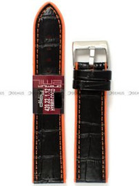 Pasek do zegarka z poliuretanu pokrytego skórą Diloy 420.22.1.12, 22 mm, Czarny, Pomarańczowy