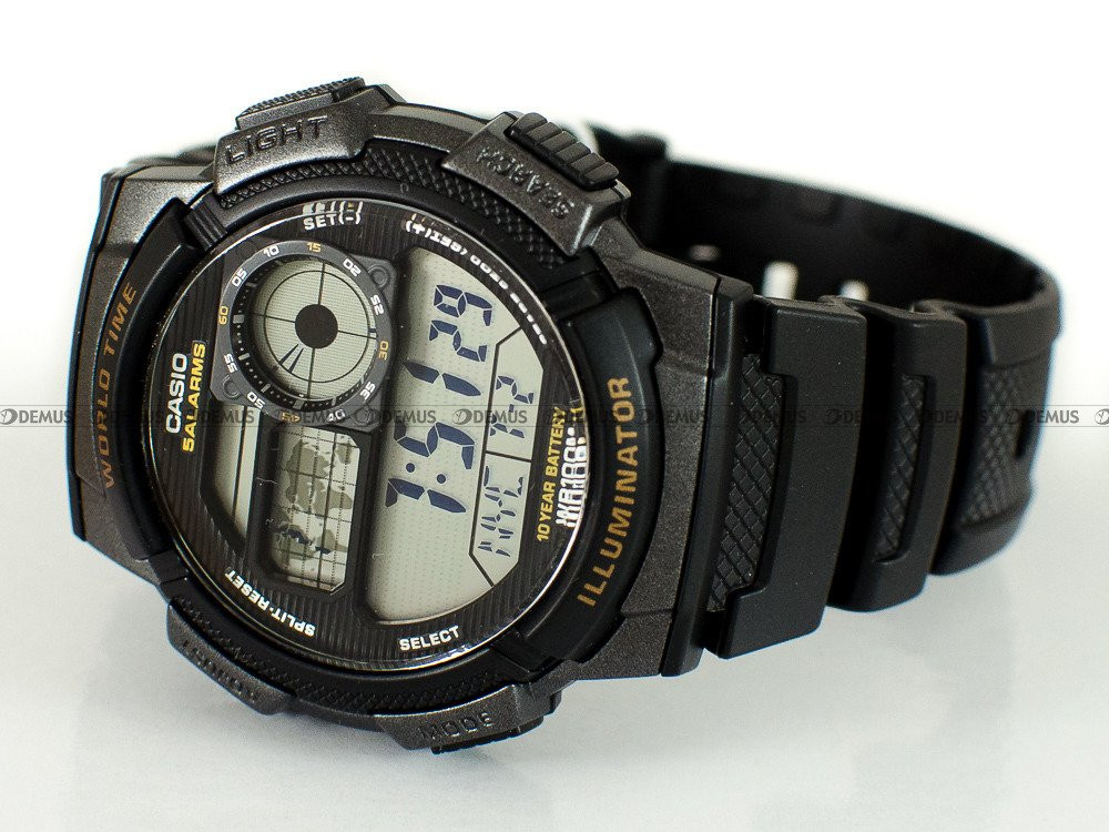 Markowy zegarek Casio Sport Electronic AE-1000W-1AVEF to świetny prezent głównie dla Panów, którzy cenią sobie elegancję i szyk. Wygodę w codziennym użytkowaniu zapewnia pasek z tworzywa. Sercem tego modelu jest ceniony za niezawodność mechanizm kwarcowy. Koperta z tworzywa skutecznie chroni mechanizm i jednocześnie gwarantuje odpowiedni komfort. Wysoka jakość wykonania znajduje potwierdzenie w klasie wodoodporności WR100.Elektroniczna tarcza z pewnością przypadnie do gustu właścicielowi tego zegarka. Tarcza została dodatkowo podświetlona z wykorzystaniem technologii LED. Do ochrony tarczy zegarka wykorzystano szkło mineralne, które zapewnia wysoką odporność na zarysowanie i stłuczenie. Zegarek wyposażono w funkcję automatycznego kalendarza. Urządzenie wyposażono w budzik z możliwością ustawienia pięciu niezależnych alarmów. Jedną z wielu przydatnych funkcji tego modelu jest stoper do 24h z dokładnością do 0,01s.