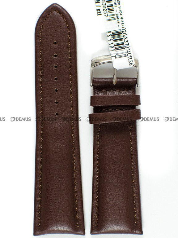 Pasek do zegarka Morellato A01U4026A37034CR26 wykonany z tradycyjnej, naturalnej skóry. Prezentowany pasek ma kolor brązowy. Długość paska wynosi 18 cm (od klamerki do ostatniego otworu). Pasek ma szerokość 26 mm.Parametry techniczne