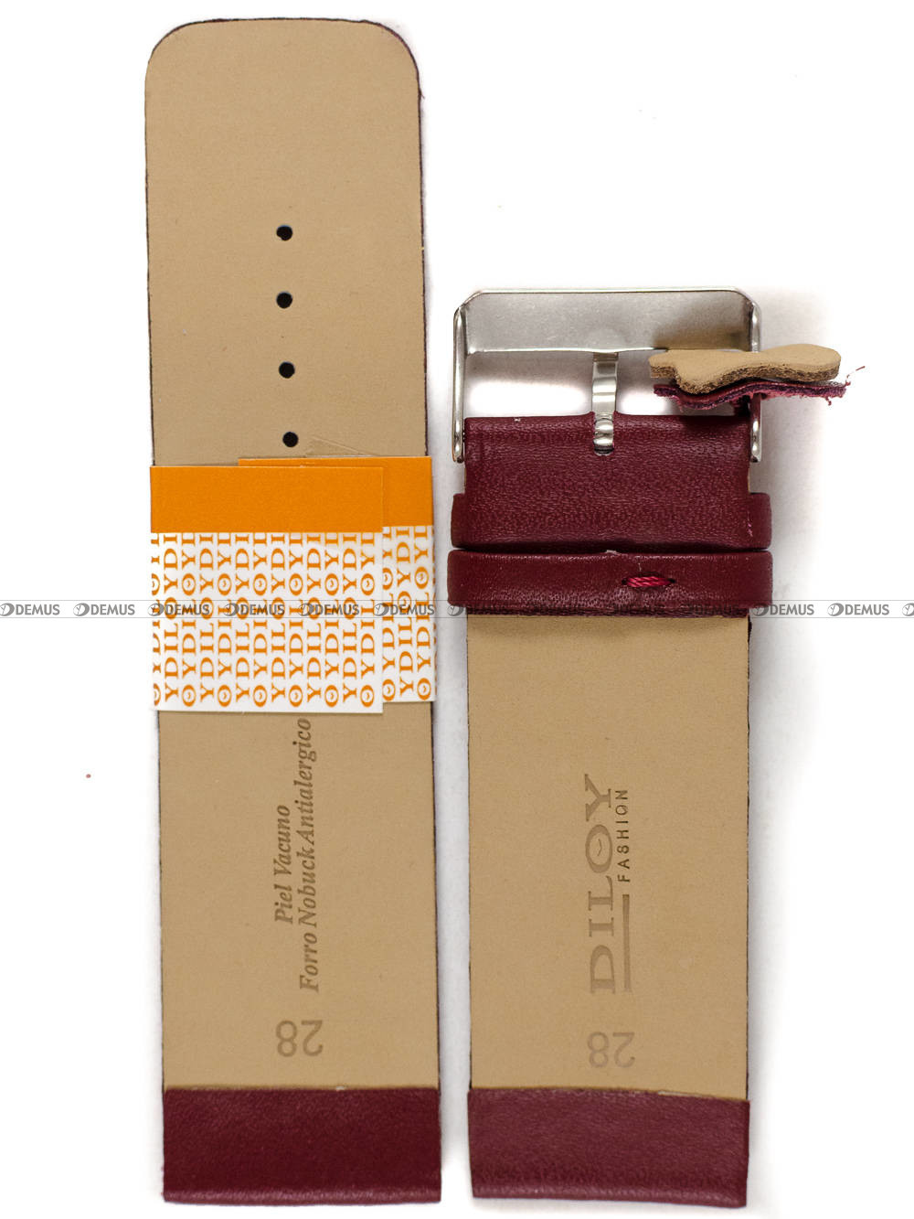 Skórzany pasek do zegarka Diloy 327.28.4, 28 mm, Bordowy