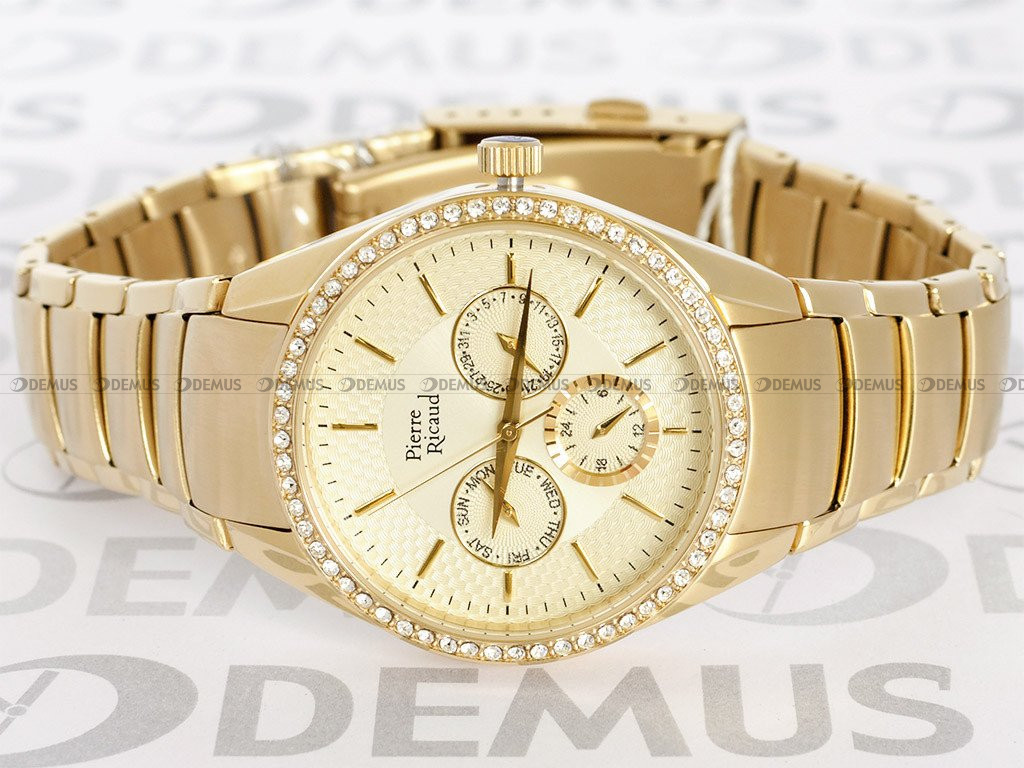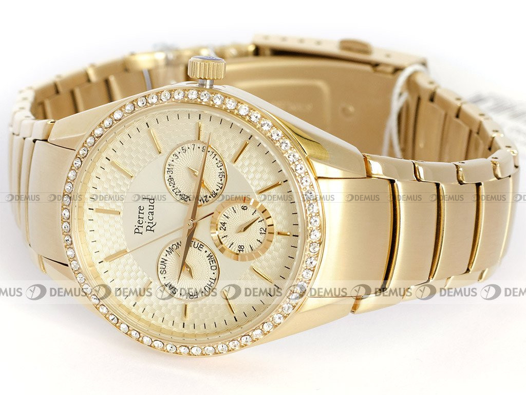 Elegancki zegarek damski Pierre Ricaud P21032.1111QFZ to idealny pomysł na prezent dla Pań ceniących sobie elegancję i styl. Istotnym aspektem decydującym o wyglądzie tego modelu jest stalowa bransoleta. Zegarek jest napędzany przez mechanizm kwarcowy. Okrągła, stalowa koperta świetnie sprawdza się w codziennym użytkowaniu.Złota, wskazówkowa tarcza z pewnością przypadnie do gustu właścicielowi tego zegarka. Urządzenie prezentuje czas w tradycyjnej 12-godzinnej formie oraz w trybie 24-godzinnym. Tarcza zegarka jest chroniona przez szkło mineralne, które zapewnia wysoką odporność na zarysowanie i stłuczenie.