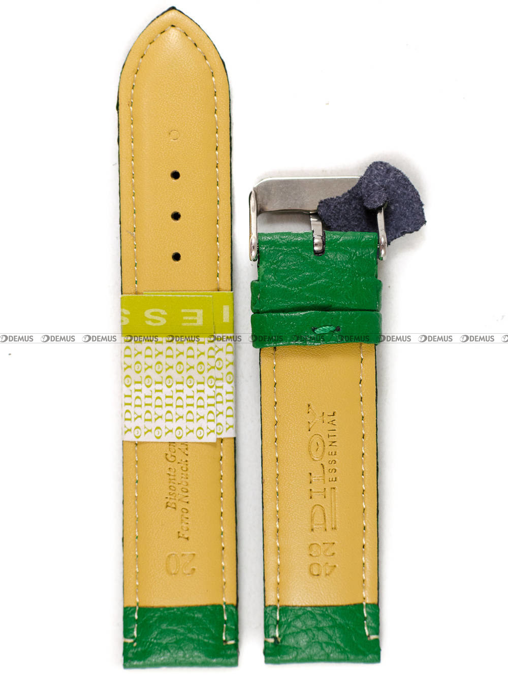 Wyjątkowy pasek do zegarka Diloy P205.20.11, który został wykonany z naturalnej skóry. Prezentowany pasek ma kolor zielony. Długość paska to 17 cm (od klamerki do ostatniego otworu). Pasek ma szerokość 20 mm.Parametry techniczne