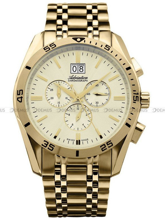 Polecamy elegancki zegarek męski Adriatica Mens Fashion A8202.1111CH dla Panów, którzy lubią podkreślić swój styl pięknym i funkcjonalnym gadżetem. Jednym z ważnych elementów decydujących o wyglądzie zegarka jest stalowa, pozłacana bransoleta. Sercem tego zegarka jest niezawodny mechanizm kwarcowy zasilany baterią. Stalowa - pozłacana koperta to najlepsza gwarancja trwałości tego zegarka. Producent gwarantuje klasę wodoszczelności na poziomie WR100. Złota, wskazówkowa tarcza z pewnością przypadnie do gustu właścicielowi tego zegarka. Do ochrony tarczy zegarka wykorzystano odporne na zarysowania i stłuczenia szkło szafirowe.Produkt jest objęty 24-miesięczną gwarancją producenta.