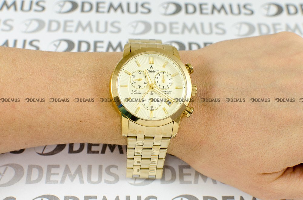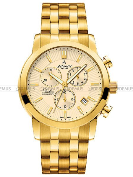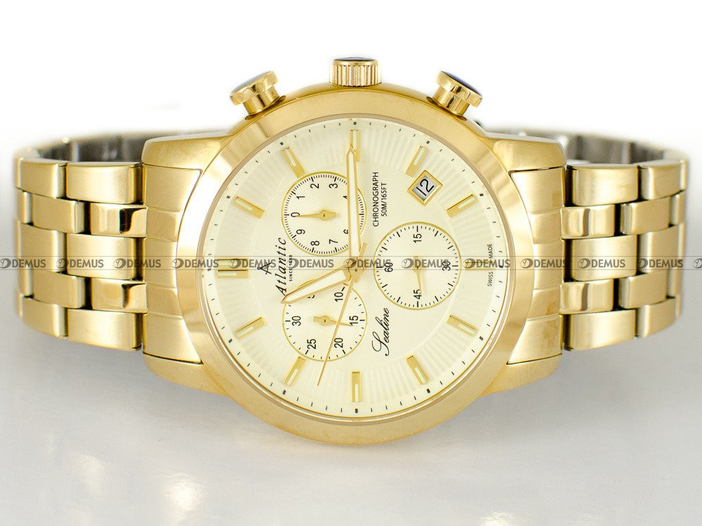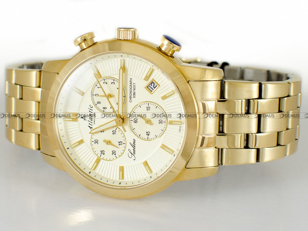 Wyjątkowy zegarek Atlantic Sealine 62455.45.31 to najlepsza propozycja głównie dla Panów lubiących szykowne dodatki. Kluczowym elementem decydującym o wyglądzie zegarka jest stalowa, pozłacana bransoleta. Sercem tego zegarka jest sprawdzony mechanizm kwarcowy. Okrągła, stalowa - pozłacana koperta idealnie pasuje do tego modelu. O najwyższej jakości zegarka świadczy m.in. klasa wodoodporności WR50. Złota, wskazówkowa tarcza z pewnością przypadnie do gustu właścicielowi tego zegarka. Wskazówki zostały dodatkowo pokryte warstwą fosforyzującą Neobrite ułatwiającą odczytywanie godziny w ciemności. Tarcza urządzenia jest chroniona przez szkło szafirowe, które zapewnia wysoką odporność na zarysowanie i stłuczenie.Zegarek Atlantic Sealine 62455.45.31 jest objęty gwarancją producenta przez 2 lata.