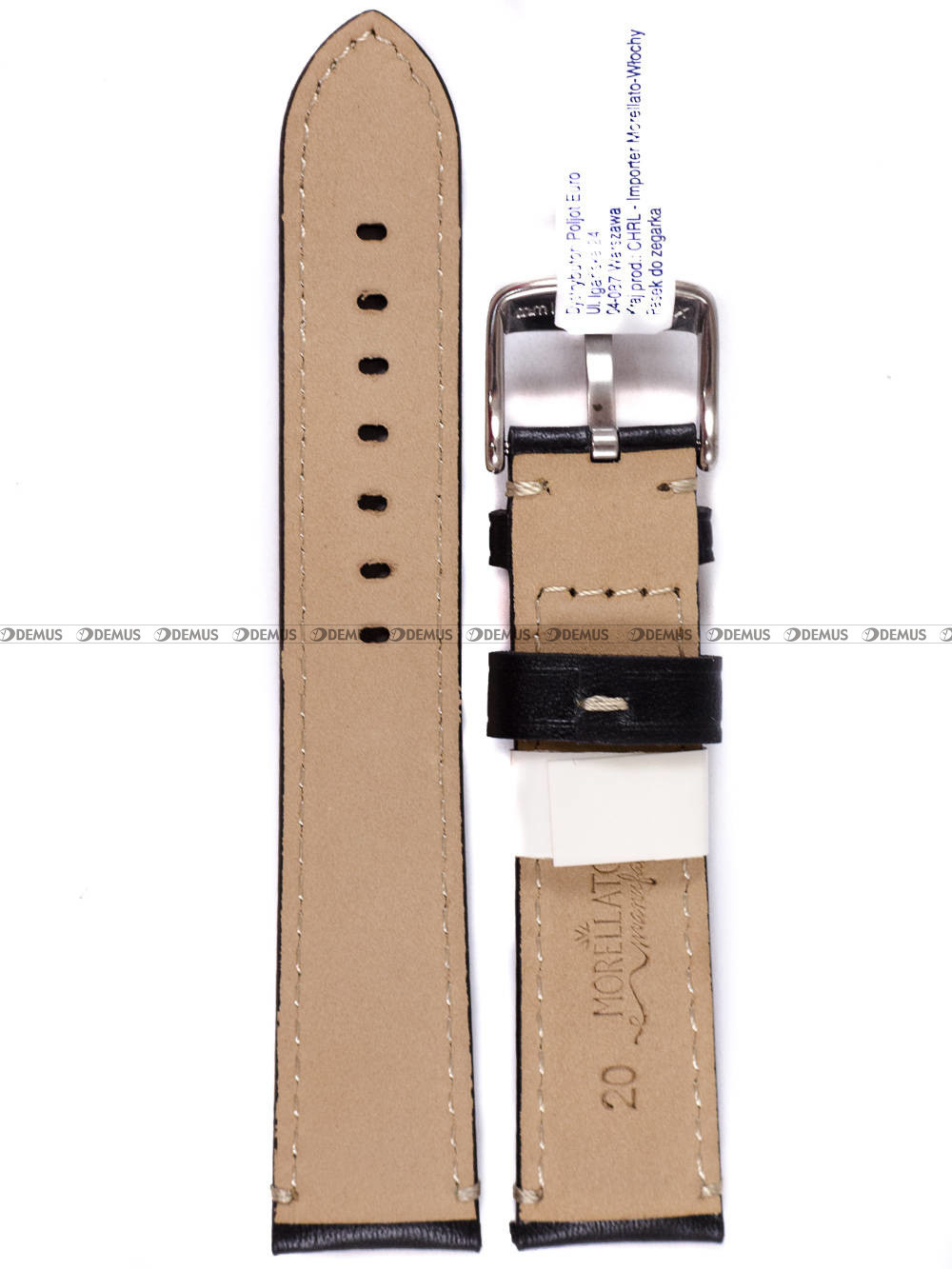 Proponujemy Państwu wyjątkowy pasek do zegarka Morellato A01X4272B12019CR20 wykonany ze skóry naturalnej. Pasek ma kolor czarny. Długość paska to 18 cm (od klamerki do ostatniego otworu). Pasek ma szerokość 20 mm (18 mm przy klamerce).Parametry techniczne