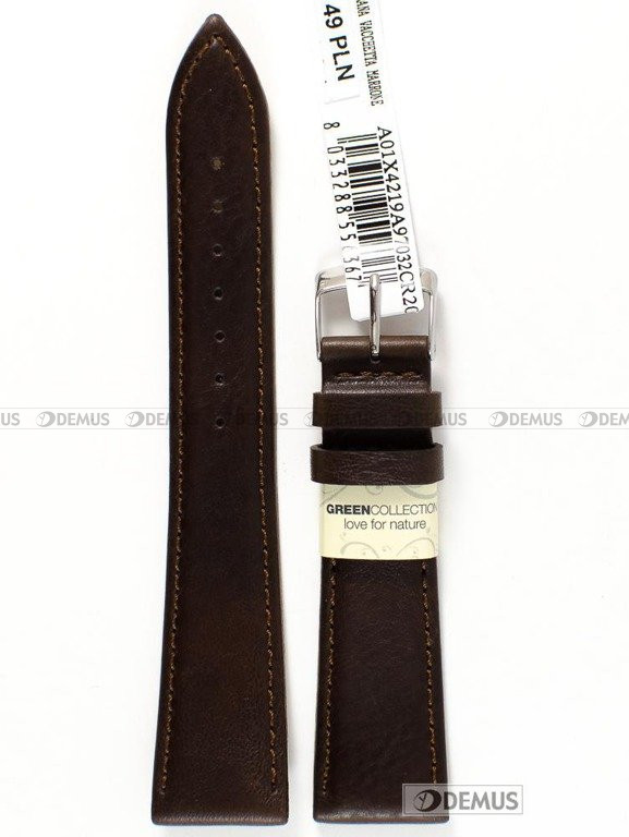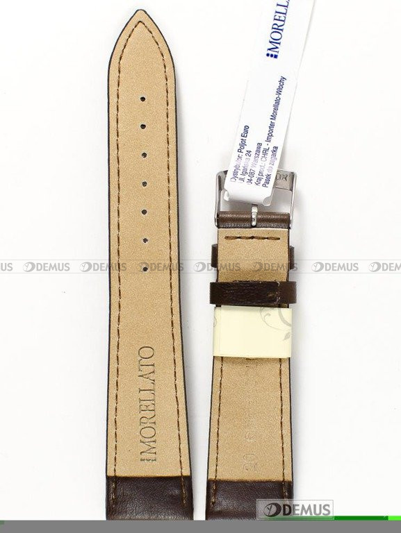 Proponujemy Państwu markowy pasek do zegarka Morellato A01X4219A97032CR20, który został wykonany ze skóry naturalnej. Cechą charakterystyczną tego paska jest brązowy kolor. Długość paska to 17,5 cm liczona od klamerki do ostatniego otworu. Jednym z najważniejszych parametrów paska jest oczywiście jego szerokość, która w tym przypadku wynosi 20 mm (16 mm przy klamerce).Parametry techniczne