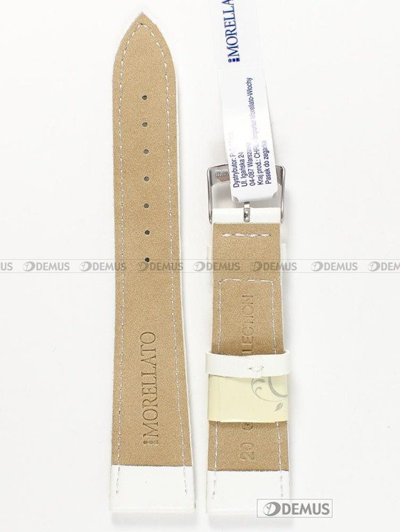 Oryginalny pasek do zegarka Morellato A01X4219A97017CR20 wykonany ze skóry naturalnej. O niezwykłości tego modelu paska decyduje przede wszystkim jego biały kolor. Pasek ma długość 17,5 cm liczoną od klamerki do ostatniego otworu. Ważną cechą każdego paska jest jego szerokość - w tym przypadku wynosi ona 20 mm (16 mm przy klamerce).Parametry techniczne