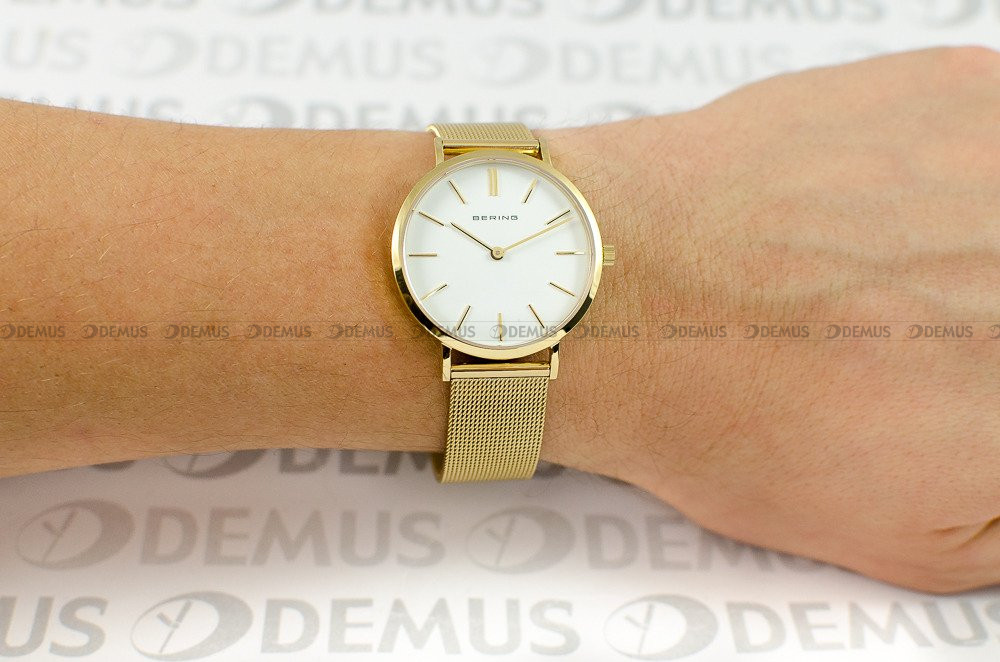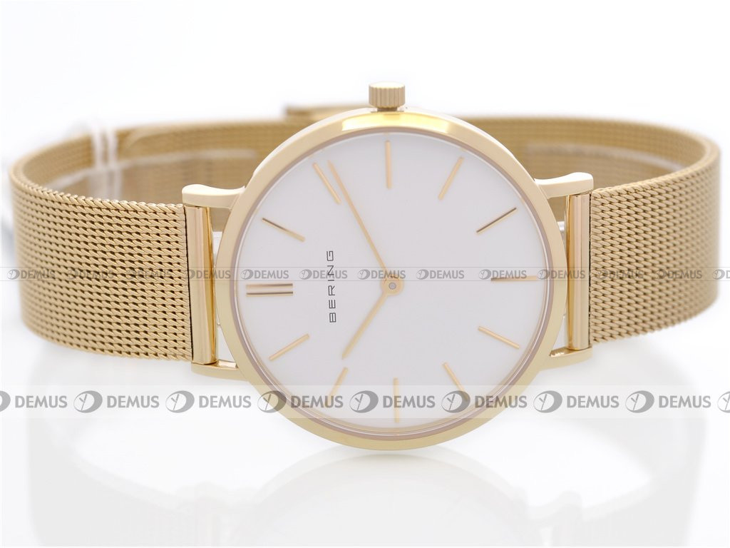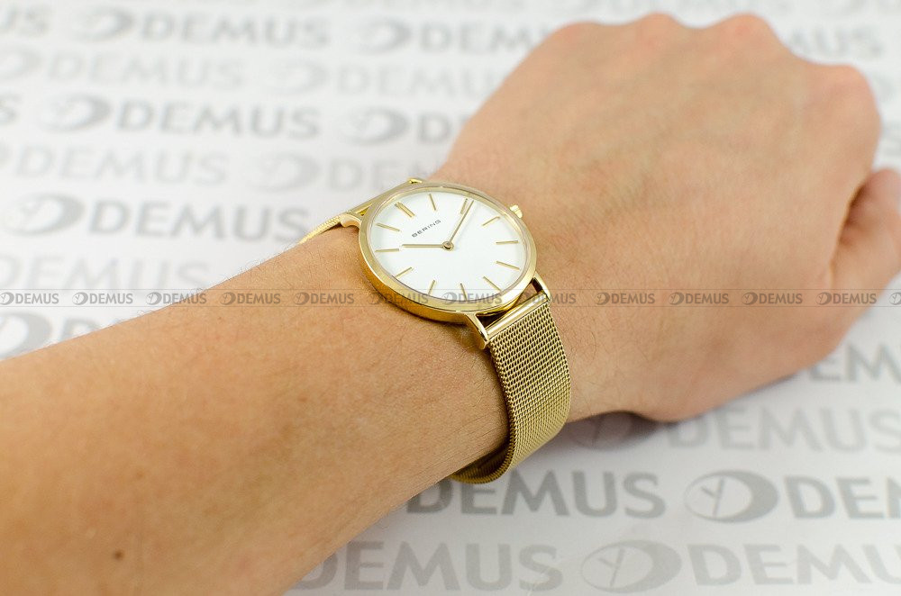 Polecamy oryginalny zegarek damski Bering 14134-331 dla Pań lubiących szykowne dodatki. Wygodę, bezpieczeństwo i niezawodność zapewnia metalowa, pozłacana bransoleta. Zegarek jest napędzany przez niezawodny mechanizm kwarcowy zasilany baterią. Stalowa - pozłacana koperta skutecznie chroni mechanizm zegarka, jednocześnie zapewniając odpowiedni komfort. Klasyczna, wskazówkowa tarcza w kolorze srebrnym bardzo dobrze pasuje do całej konstrukcji. Tarcza zegarka jest chroniona przez szkło szafirowe, które zapewnia wysoką odporność na zarysowanie i stłuczenie.Model ten jest objęty gwarancją producenta przez 3 lata od zakupu.