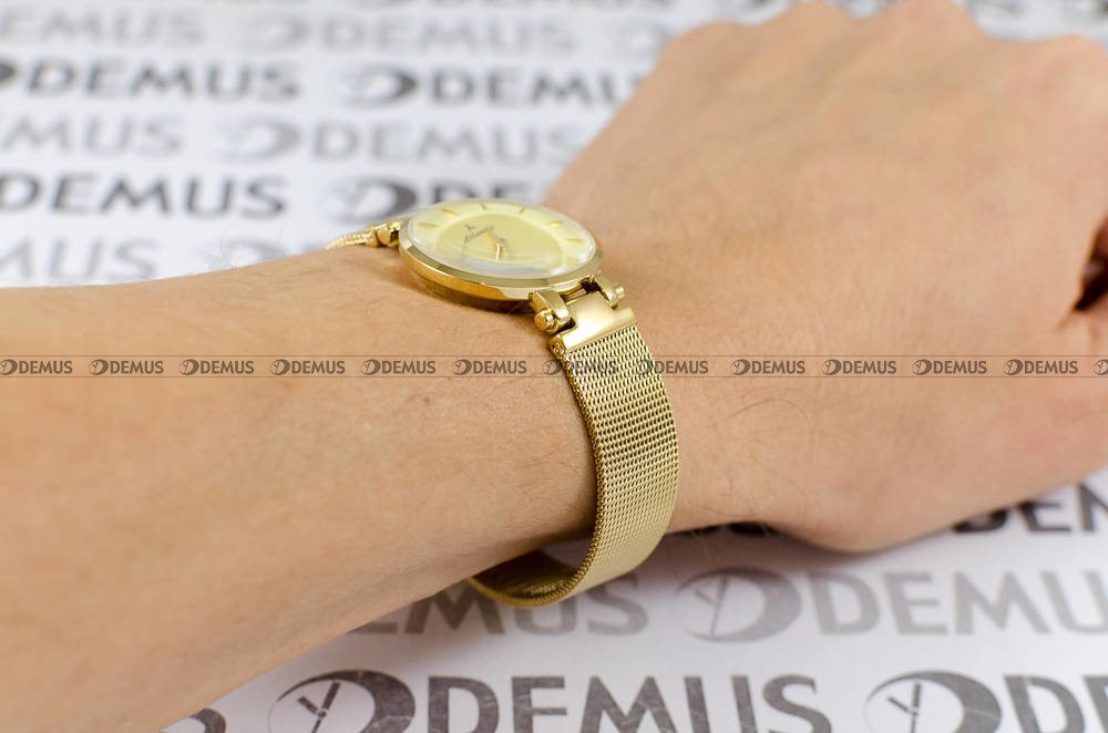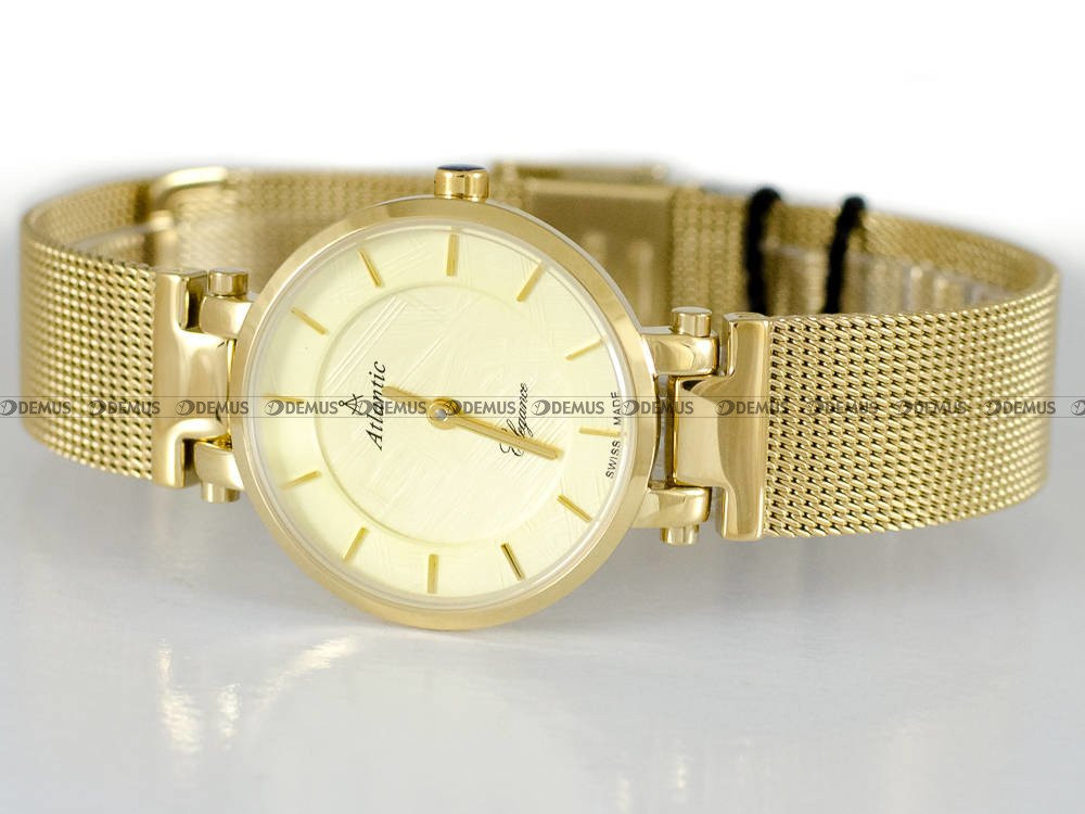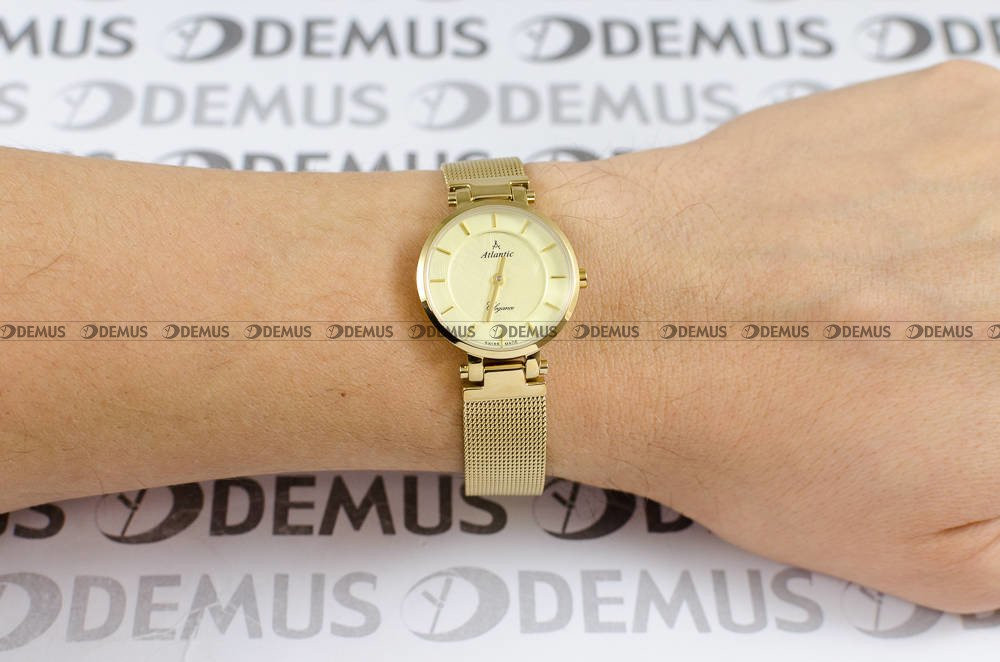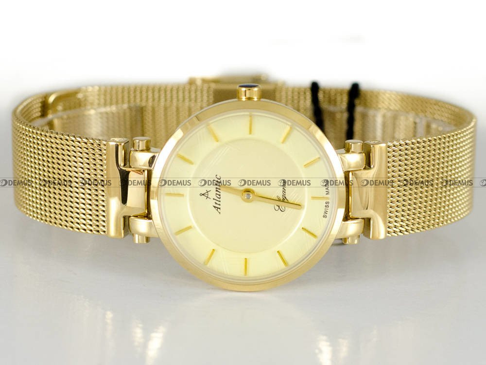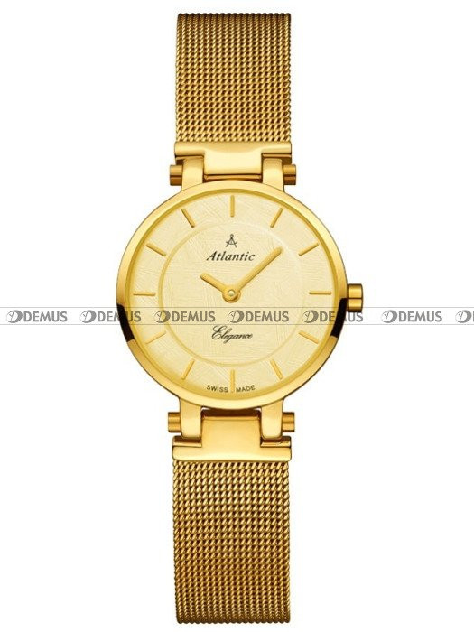 Polecamy wyjątkowy zegarek damski Atlantic Elegance 29035.45.31 dla Pań, które dbają o każdy szczegół w swoim stylu. Ważnym elementem decydującym o estetyce całości jest stalowa, pozłacana bransoleta. Urządzenie jest napędzane przez mechanizm kwarcowy. Okrągła, stalowa - pozłacana koperta to połączenie komfortu użytkownika i trwałości urządzenia.Złota, wskazówkowa tarcza podkreśla ekskluzywny charakter tego modelu. Do ochrony tarczy wykorzystano odporne na zarysowania i stłuczenia szkiełko mineralne.