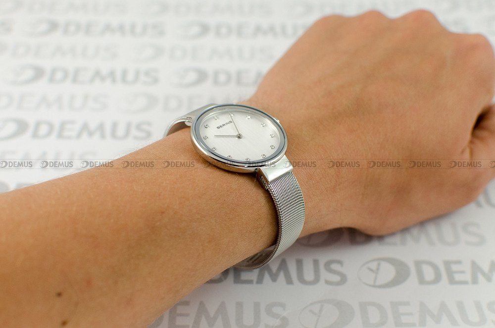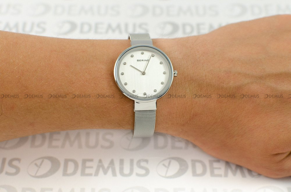 Gorąco polecamy oryginalny zegarek Bering 12034-000 dla Pań ceniących sobie funkcjonalne i eleganckie dodatki. Jednym z ważnych elementów decydujących o wyglądzie tego modelu jest metalowa bransoleta. Model ten jest napędzany przez mechanizm kwarcowy. Okrągła, stalowa koperta to najlepsza gwarancja trwałości tego modelu.Srebrna, wskazówkowa tarcza wysadzana kryształkami Swarovskiego bardzo dobrze pasuje do całej konstrukcji. Tarcza urządzenia jest chroniona przez szkiełko szafirowe, które zapewnia wysoką odporność na zarysowanie i stłuczenie.