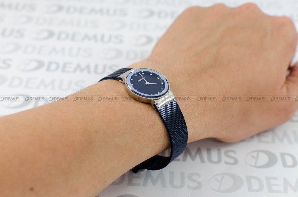 Elegancki zegarek Bering 10126-307 to idealny prezent przede wszystkim dla Pań, które lubią uzupełnić stylizację atrakcyjnym dodatkiem. Kluczowym elementem decydującym o wyglądzie urządzenia jest metalowa bransoleta. Model ten jest napędzany przez mechanizm kwarcowy zasilany baterią. Stalowa koperta idealnie pasuje do tego modelu. Zegarek cechuje się klasą wodoodporności na poziomie WR50. Klasyczna, wskazówkowa tarcza w kolorze niebieski, Masa perłowam wykonana z masy perłowej, Wysadzana kryształkami Swarovskiego jest elementem wyróżniającym ten model spośród innych zegarków. Do ochrony tarczy zegarka wykorzystano odporne na zarysowania i stłuczenia szkło szafirowe.Model ten jest objęty 36-miesięczną gwarancją.