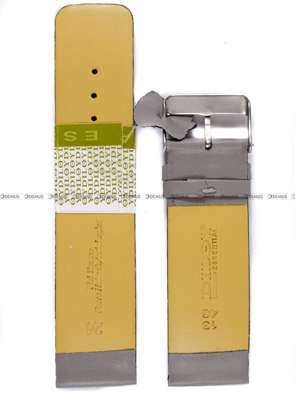 Skórzany pasek do zegarka Diloy 327.24.7, 24 mm, Popielaty