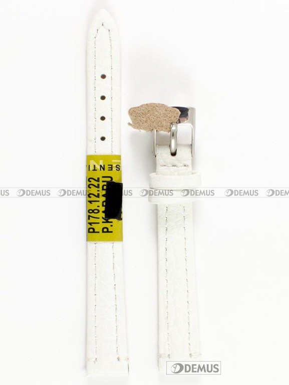 Skórzany pasek do zegarka Diloy P178.12.22, 12 mm, Biały