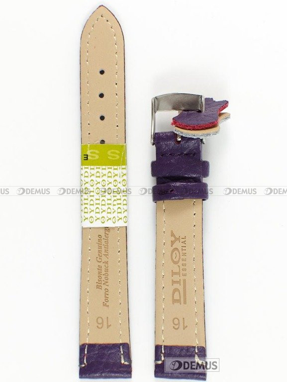Skórzany pasek do zegarka Diloy P178.16.18, 16 mm, Fioletowy