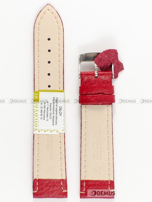 Skórzany pasek do zegarka Diloy P178.20.6, 20 mm, Czerwony