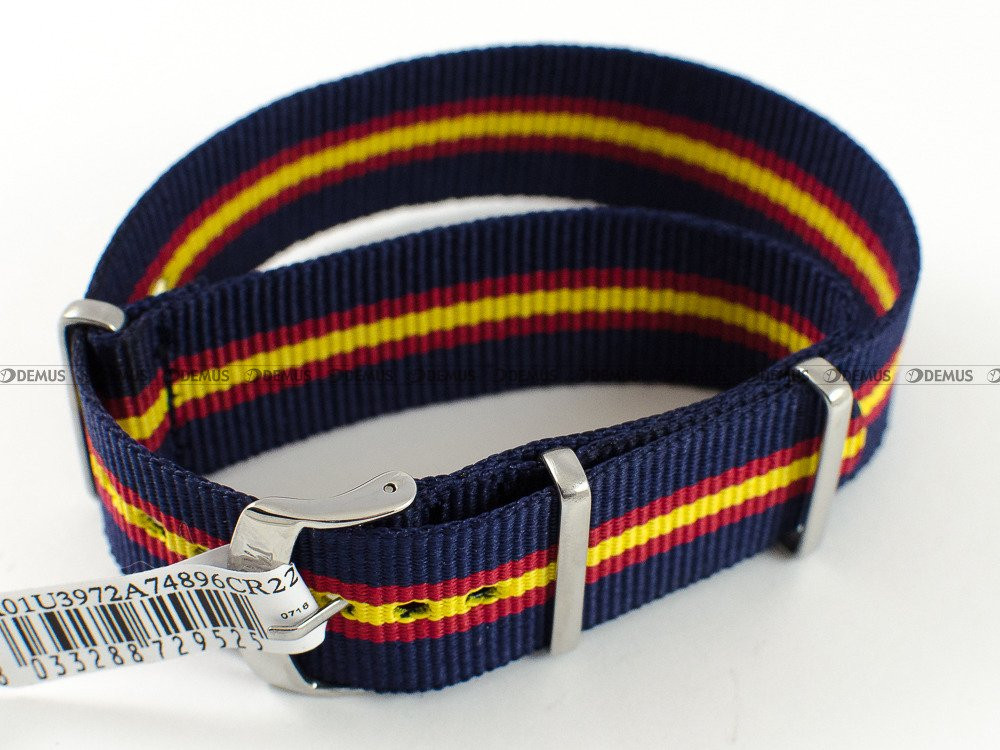 Oryginalny pasek do zegarka Morellato A01U3972A74896CR22 z nylonu. Pasek ma kolor czerwono-niebieski-żółty. Długość paska wynosi 22,5 cm (od klamerki do ostatniego otworu). Jednym z najważniejszych parametrów paska jest oczywiście jego szerokość, która w tym przypadku wynosi 22 mm.Parametry techniczne