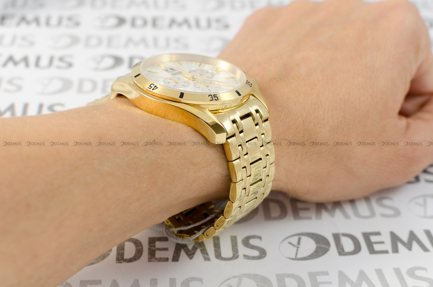 wykonana z wysokiej jakości stali szlachetnej. Stop ten charakteryzuje się najwyższym stopniem odporności na korozję. Koperta jest pozłacana