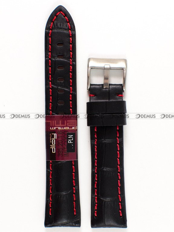 Skórzany pasek do zegarka Diloy 395.20.1.6, 20 mm, Czarny