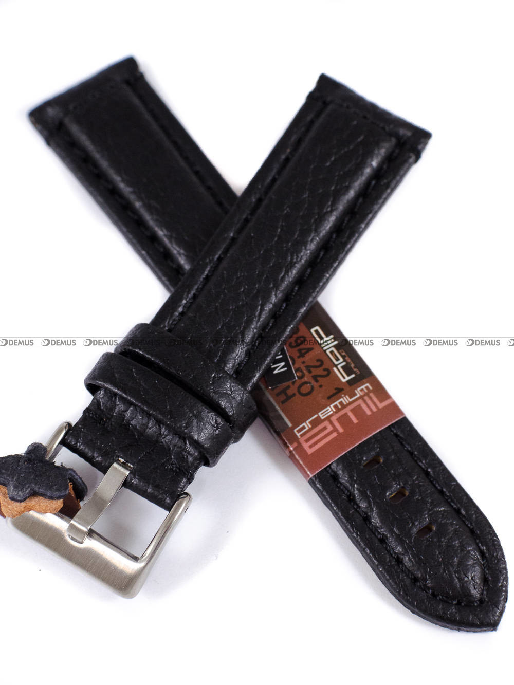 Skórzany pasek do zegarka Diloy 394.22.1, 22 mm, Czarny