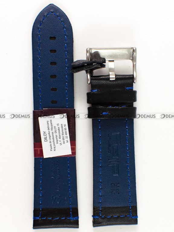 Skórzany pasek do zegarka Diloy 393.24.1.5, 24 mm, Czarny