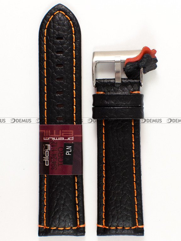Skórzany pasek do zegarka Diloy 394.24.1.12, 24 mm, Czarny