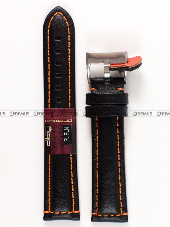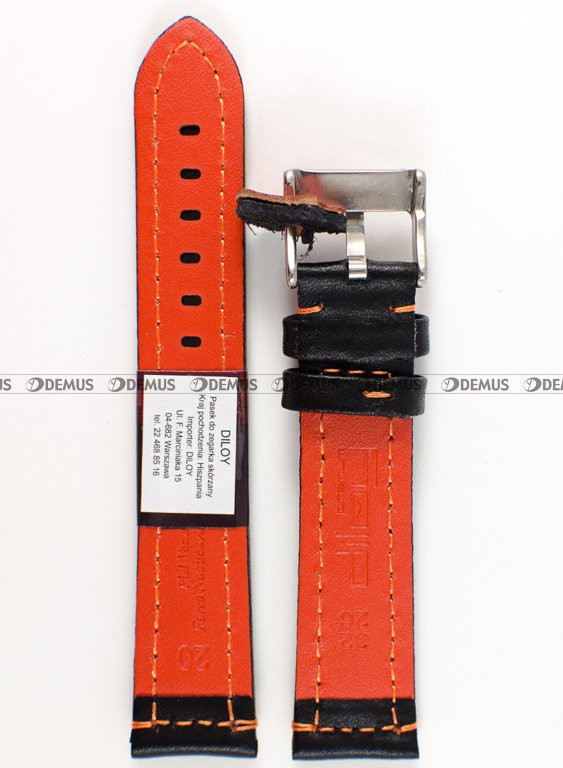 Skórzany pasek do zegarka Diloy 393.20.1.12, 20 mm, Czarny