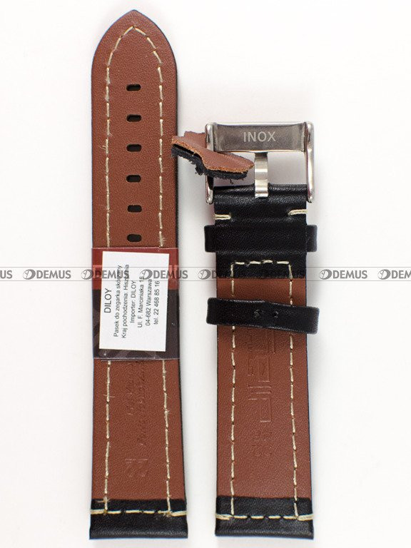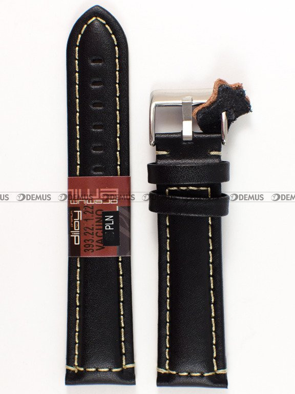 Skórzany pasek do zegarka Diloy 393.22.1.22, 22 mm, Czarny