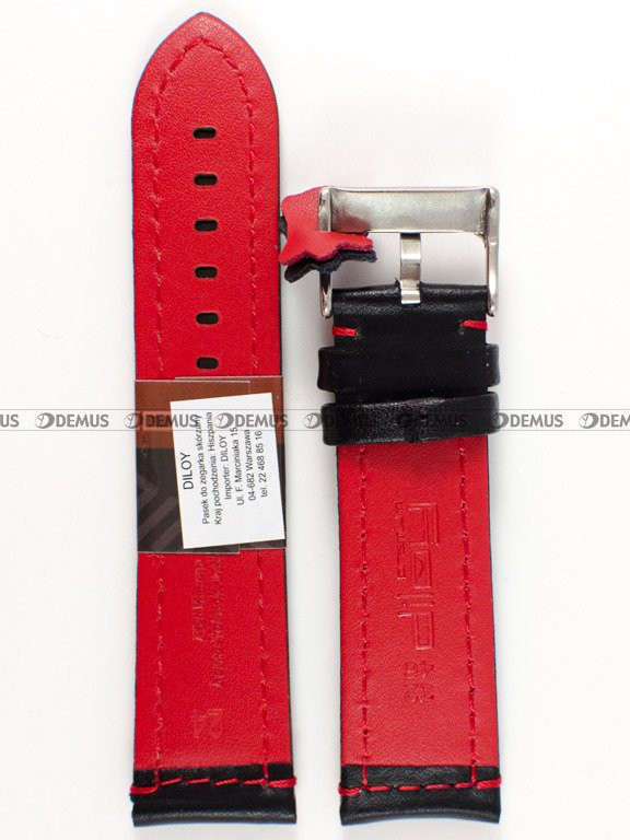 Skórzany pasek do zegarka Diloy 393.24.1.6, 24 mm, Czarny