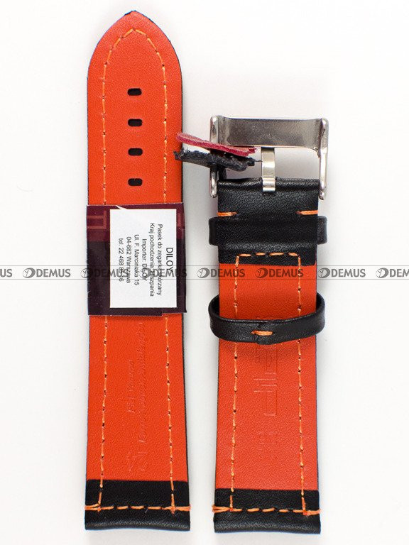 Skórzany pasek do zegarka Diloy 393.24.1.12, 24 mm, Czarny