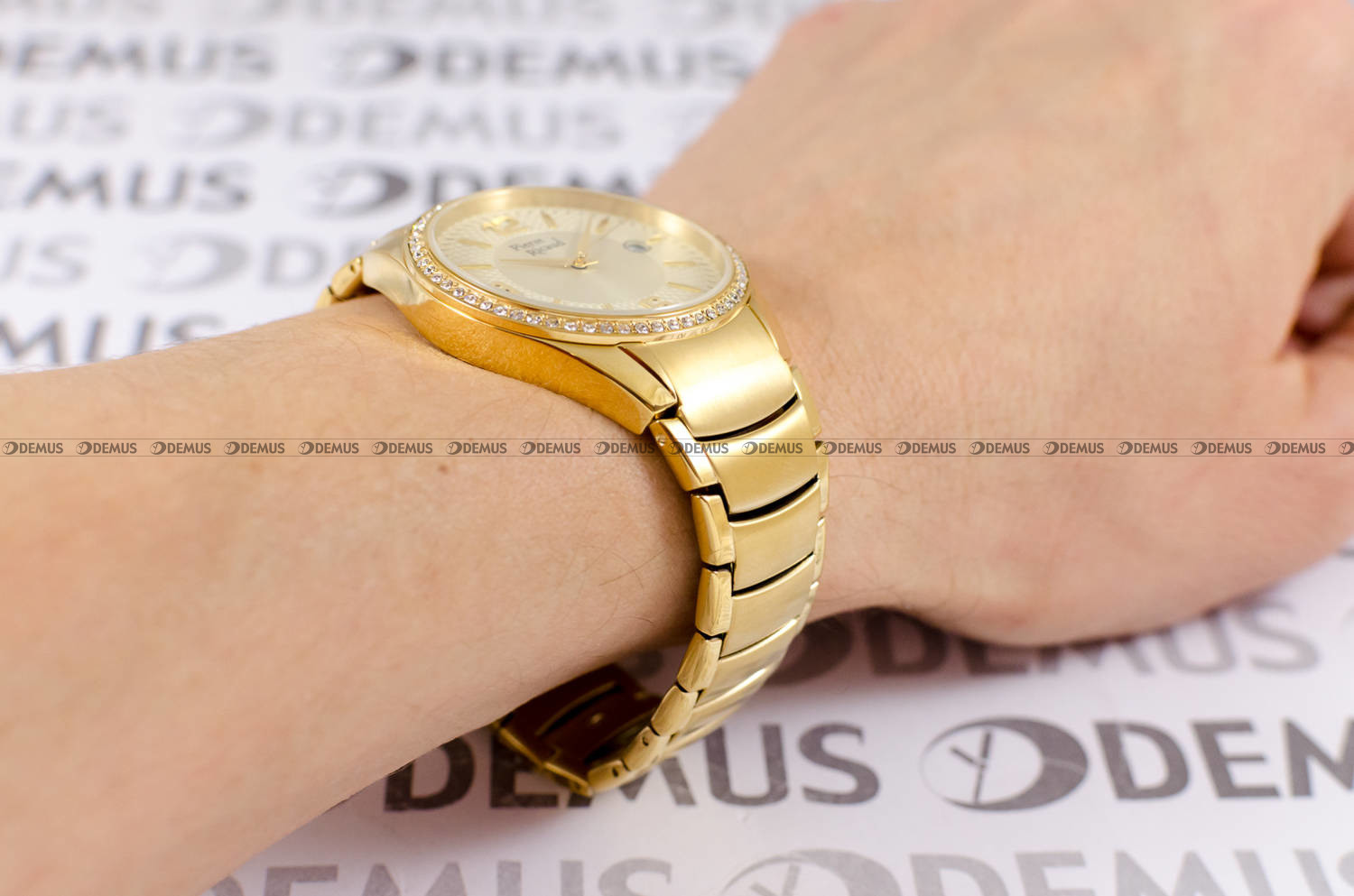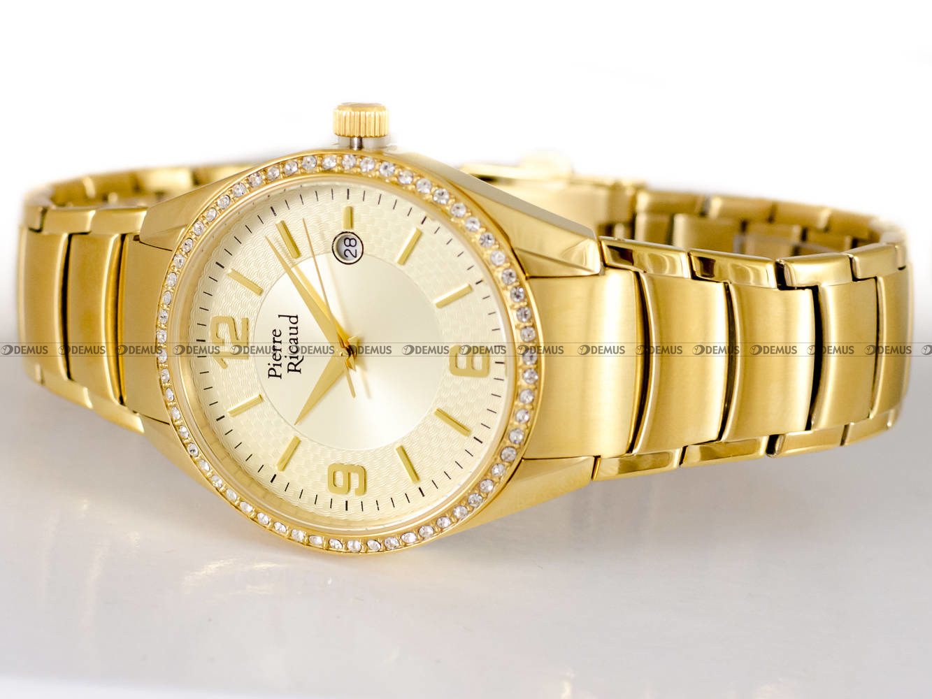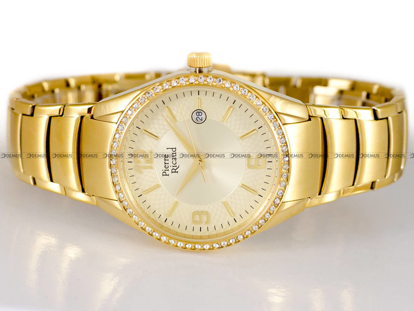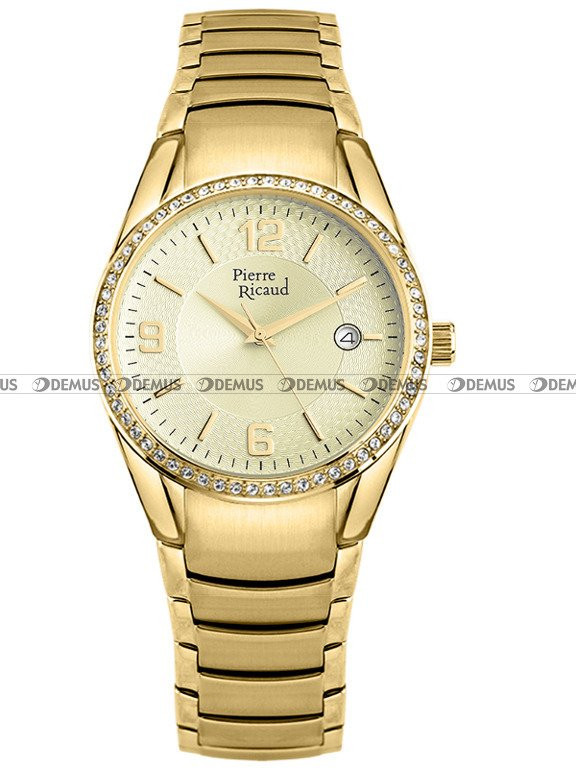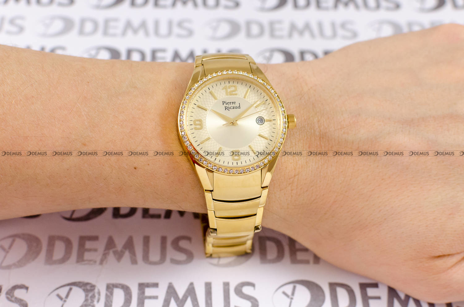 Gorąco polecamy markowy zegarek Pierre Ricaud P21032.1151QZ dla Pań ceniących sobie funkcjonalne i eleganckie dodatki. Kluczowym elementem decydującym o wyglądzie zegarka jest stalowa, pozłacana bransoleta. Sercem tego modelu jest niezawodny mechanizm kwarcowy zasilany baterią. Okrągła, stalowa - pozłacana, wysadzana kryształkami koperta skutecznie chroni mechanizm i jednocześnie gwarantuje odpowiedni komfort. Klasyczna, wskazówkowa tarcza w kolorze złotym bardzo dobrze pasuje do całej konstrukcji. Tarcza urządzenia jest chroniona przez odporne na zarysowania i stłuczenia szkiełko mineralne.Zegarek jest objęty 24-miesięczną gwarancją producenta.