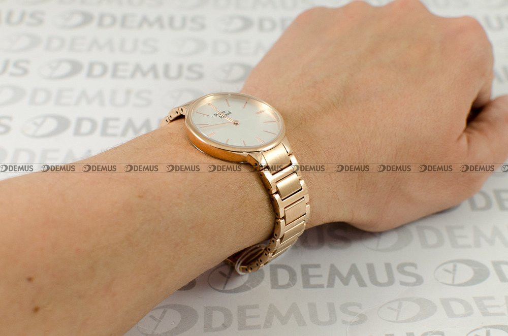 Gorąco polecamy oryginalny zegarek Pierre Ricaud P22034.9113Q dla Pań, które lubią podkreślić swój niepowtarzalny styl szykownym dodatkiem. Kluczowym elementem decydującym o wyglądzie zegarka jest stalowa, pozłacana bransoleta. Urządzenie jest napędzane przez niezawodny mechanizm kwarcowy zasilany baterią. Okrągła, stalowa - pozłacana koperta to połączenie komfortu użytkownika i trwałości urządzenia. Zegarek zapewnia wodoszczelności na poziomie WR50.Srebrna, wskazówkowa tarcza podkreśla ekskluzywny charakter tego modelu. Do ochrony tarczy zegarka wykorzystano odporne na zarysowania i stłuczenia szkło mineralne.