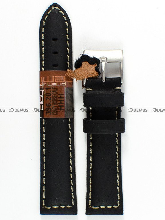 Skórzany pasek do zegarka Diloy 396.20.1, 20 mm, Czarny