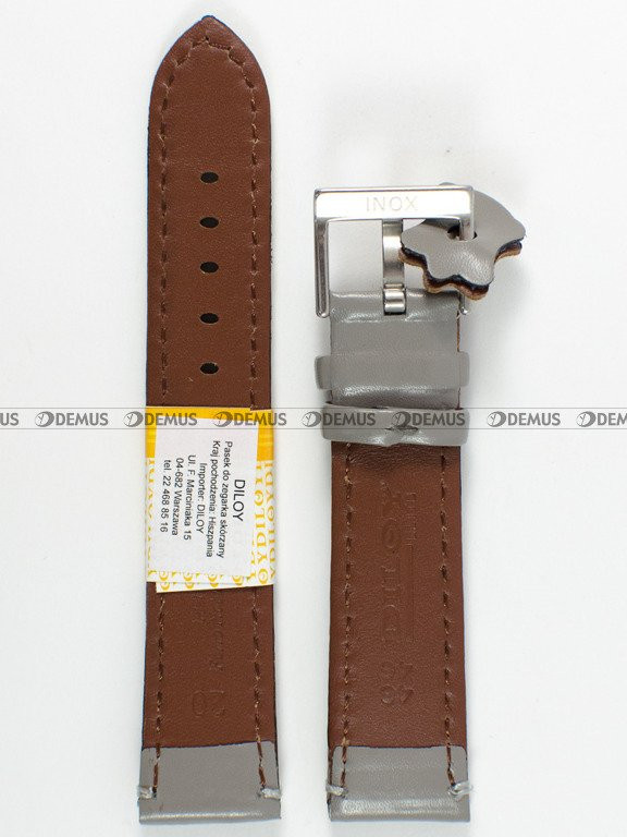 Skórzany pasek do zegarka Diloy 401.20.7, 20 mm, Popielaty