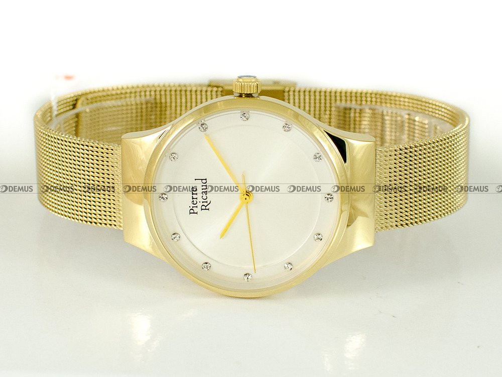 Polecamy wyjątkowy zegarek damski Pierre Ricaud P22038.1143Q dla Pań, które cenią sobie dodatki z charakterem. Jednym z ważnych elementów decydujących o wyglądzie tego modelu jest siateczkowa - Mesh, pozłacana bransoleta. Sercem tego modelu jest niezawodny mechanizm kwarcowy. Okrągła, stalowa - pozłacana koperta skutecznie chroni mechanizm zegarka, jednocześnie zapewniając odpowiedni komfort. Srebrna, wskazówkowa tarcza wysadzana kryształkami podkreśla ekskluzywny charakter tego modelu. Do ochrony tarczy wykorzystano szkiełko mineralne, które zapewnia wysoką odporność na zarysowanie i stłuczenie.Model Pierre Ricaud P22038.1143Q jest objęty 2-letnią gwarancją.