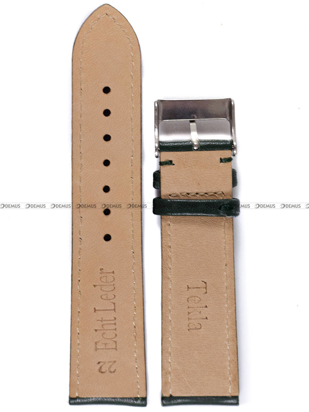 Pasek do zegarka Tekla PT24.22.3 wykonany z tradycyjnej, naturalnej skóry. Produkt jest koloru zielonego. Długość paska to 16 cm liczona od klamerki do ostatniego otworu. Ważną cechą każdego paska jest jego szerokość - w tym przypadku wynosi ona 22 mm (20 mm przy klamerce).Parametry techniczne