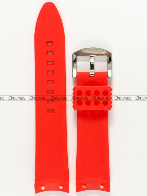 Pasek silikonowy w kolorze czerwonym idealnie pasuje do zegarka Vostok Europe Anchar 6S30-5105201. Szerokość paska to 24 mm, klamra jest w kolorze srebrnym i posiada połysk. Pasek silikonowy polecany jest do noszenia w lecie gdy często stykamy się na plaży z wodą.