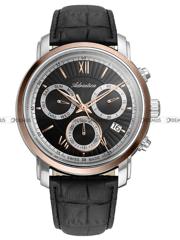 Nowość w ofercie - męski Adriatica Mens strap A8193.R266CH to wymarzony gadżet przede wszystkim dla Panów ceniących sobie funkcjonalne i eleganckie dodatki. O charakterze tego modelu w dużej mierze decyduje skórzany pasek. Sercem tego zegarka jest mechanizm kwarcowy zasilany baterią. Prostokątna, stalowa koperta jest najlepszą gwarancją trwałości tego zegarka. Zegarek cechuje się klasą wodoodporności na poziomie WR50. Czarna, wskazówkowa tarcza jest elementem wyróżniającym ten model spośród innych zegarków. Zegarek pokazuje czas w tradycyjnym, 12-godzinnym trybie. Widoczny na tarczy chronograf mierzy czas do 30 minut z dokładnością do 1 sekundy. Tarcza zegarka jest chroniona przez szkiełko szafirowe, które zapewnia wysoką odporność na zarysowanie i stłuczenie.Model ten jest objęty 24-miesięczną gwarancją.