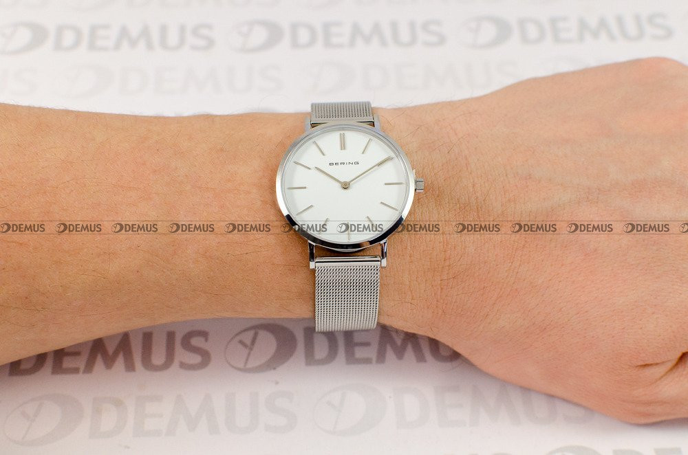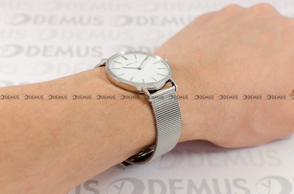 Model damski Bering 14134-004 to ciekawa propozycja przede wszystkim dla Pań ceniących sobie funkcjonalne i eleganckie dodatki. Kluczowym elementem decydującym o wyglądzie zegarka jest siateczkowa - Mesh bransoleta. Sercem tego modelu jest niezawodny mechanizm kwarcowy. Okrągła, stalowa koperta skutecznie chroni mechanizm i jednocześnie gwarantuje odpowiedni komfort.Srebrna, wskazówkowa tarcza jest wyrazistym i jednocześnie funkcjonalnym dopełnieniem tego modelu. Do ochrony tarczy wykorzystano szkiełko szafirowe, które zapewnia wysoką odporność na zarysowanie i stłuczenie.