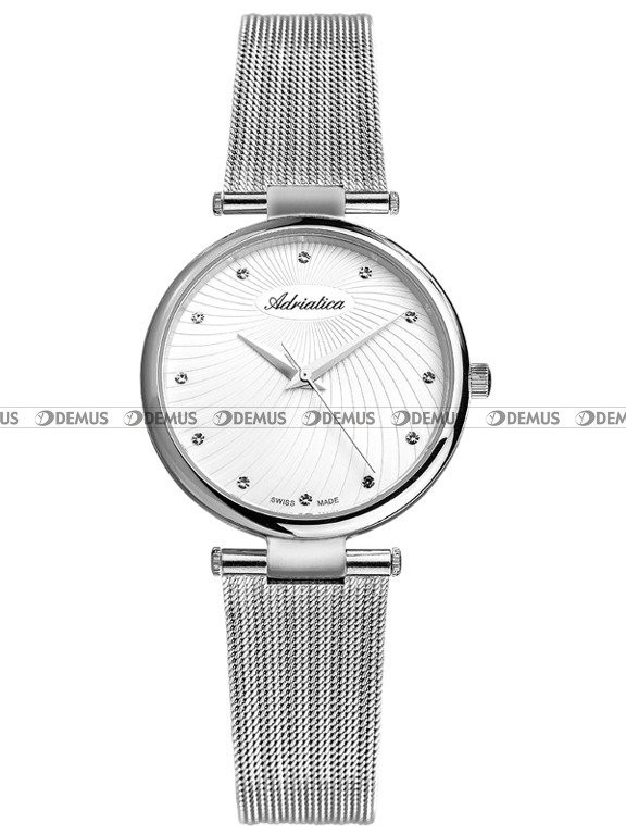 Nowość w ofercie - damski Adriatica Ladies fashion A3689.5143Q to wymarzony gadżet głównie dla Pań, które lubią podkreślić swój styl pięknym i funkcjonalnym gadżetem. O niezwykłym charakterze czasomierza decyduje m.in. siateczkowa - Mesh bransoleta. Zegarek jest napędzany przez mechanizm kwarcowy zasilany baterią. Okrągła, stalowa koperta to najlepsza gwarancja trwałości tego modelu.Klasyczna, wskazówkowa tarcza w kolorze srebrny, Masa perłowam wysadzana kryształkami to idealne połączenie stylu i funkcjonalności. Zegarek prezentuje czas w tradycyjnej 12-godzinnej formie. Tarcza zegarka jest chroniona przez odporne na zarysowania i stłuczenia szkło mineralne.