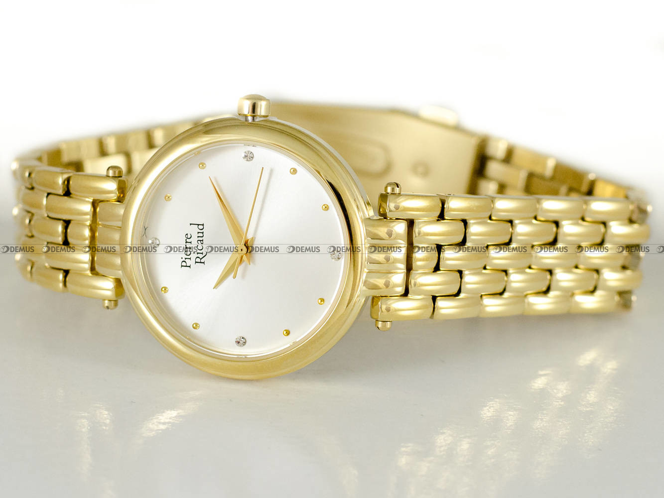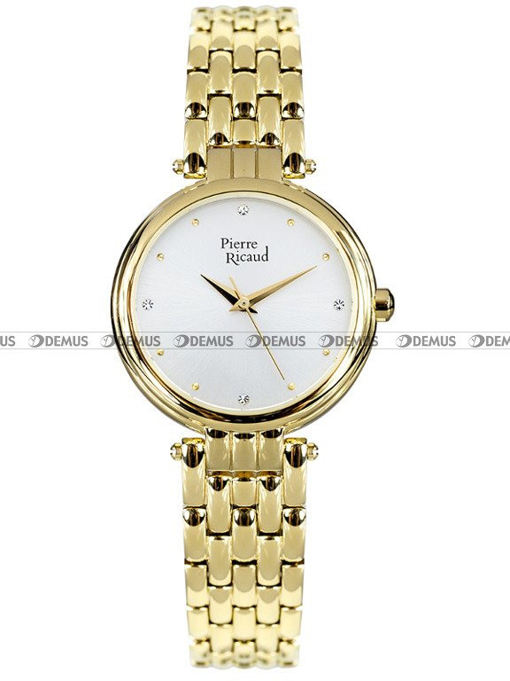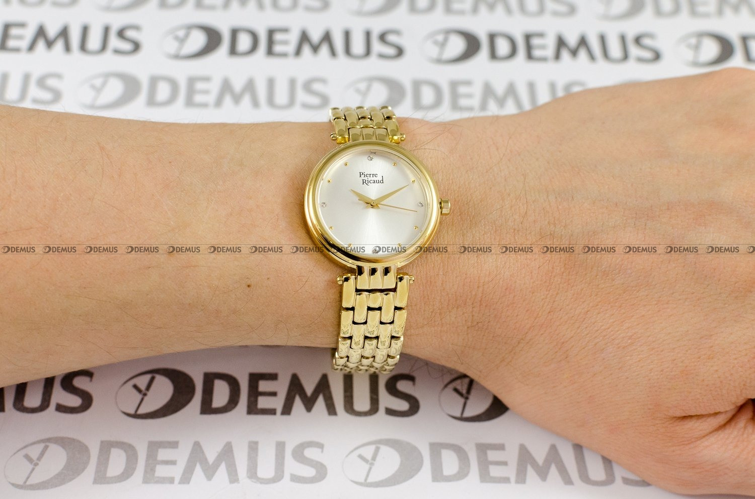 Gorąco polecamy markowy zegarek damski Pierre Ricaud P22010.1143Q dla Pań, które lubią uzupełnić stylizację atrakcyjnym dodatkiem. Kluczowym elementem decydującym o wyglądzie zegarka jest stalowa, pozłacana bransoleta. Sercem tego modelu jest sprawdzony mechanizm kwarcowy zasilany baterią. Stalowa - pozłacana koperta idealnie pasuje do tego modelu.Srebrna, wskazówkowa tarcza wysadzana kryształkami to idealne połączenie stylu i funkcjonalności. Tarcza urządzenia jest chroniona przez szkło mineralne, które zapewnia wysoką odporność na zarysowanie i stłuczenie.