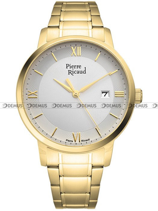 Gorąco polecamy oryginalny zegarek męski Pierre Ricaud P97239.1167Q dla Panów, którzy cenią sobie dodatki z charakterem. Ważnym elementem wykończenia zegarka jest stalowa, pozłacana bransoleta. Urządzenie jest napędzane przez niezawodny mechanizm kwarcowy. Stalowa - pozłacana koperta skutecznie chroni mechanizm i jednocześnie gwarantuje odpowiedni komfort. Zegarek zapewnia wodoszczelności na poziomie WR50. Klasyczna, wskazówkowa tarcza w kolorze szarym doskonale współgra z niezwykłym charakterem tego modelu. Zegarek został dodatkowo wyposażony w datownik pokazujący dzień miesiąca. Do ochrony tarczy wykorzystano odporne na zarysowania i stłuczenia szkło mineralne.Produkt jest objęty 24-miesięczną gwarancją.