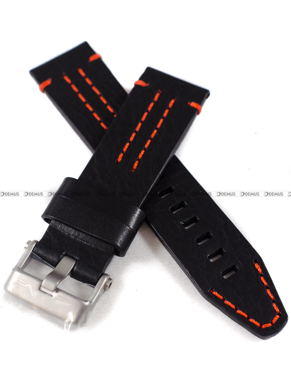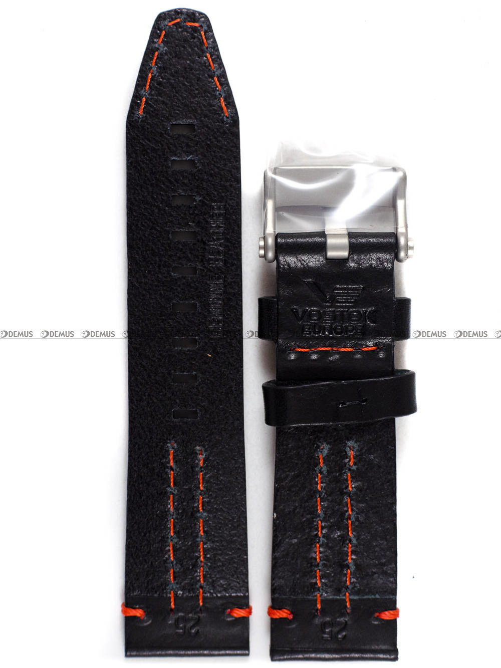 Pasek skórzany czarny z pomarańczową nicią do zegarka Vostok Europe Ekranoplan 2 NH35A-546A509 - 25 mm