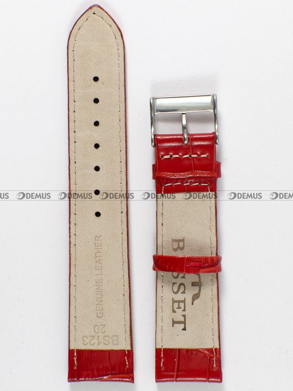 Skórzany pasek do zegarka Bisset PB21.20.4, 20 mm, Czerwony