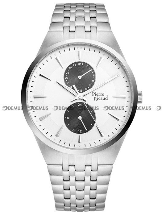 Nowość w ofercie - zegarek męski Pierre Ricaud P97251.5113QF to produkt stworzony głównie dla aktywnych Panów ceniących funkcjonalność i wygodę. Ważnym elementem wykończenia zegarka jest stalowa bransoleta. Zegarek jest napędzany przez ceniony za niezawodność mechanizm kwarcowy zasilany baterią. Okrągła, stalowa koperta skutecznie chroni mechanizm i jednocześnie gwarantuje odpowiedni komfort. Producent deklaruje dla tego modelu klasę wodoszczelności WR100.Srebrna, wskazówkowa tarcza z pewnością przypadnie do gustu właścicielowi tego zegarka. Zegarek pokazuje czas w trybie 12- oraz 24-godzinnym. Urządzenie oferuje datownik wskazujący aktualny dzień miesiąca. Do ochrony tarczy zegarka wykorzystano odporne na zarysowania i stłuczenia szkło mineralne.