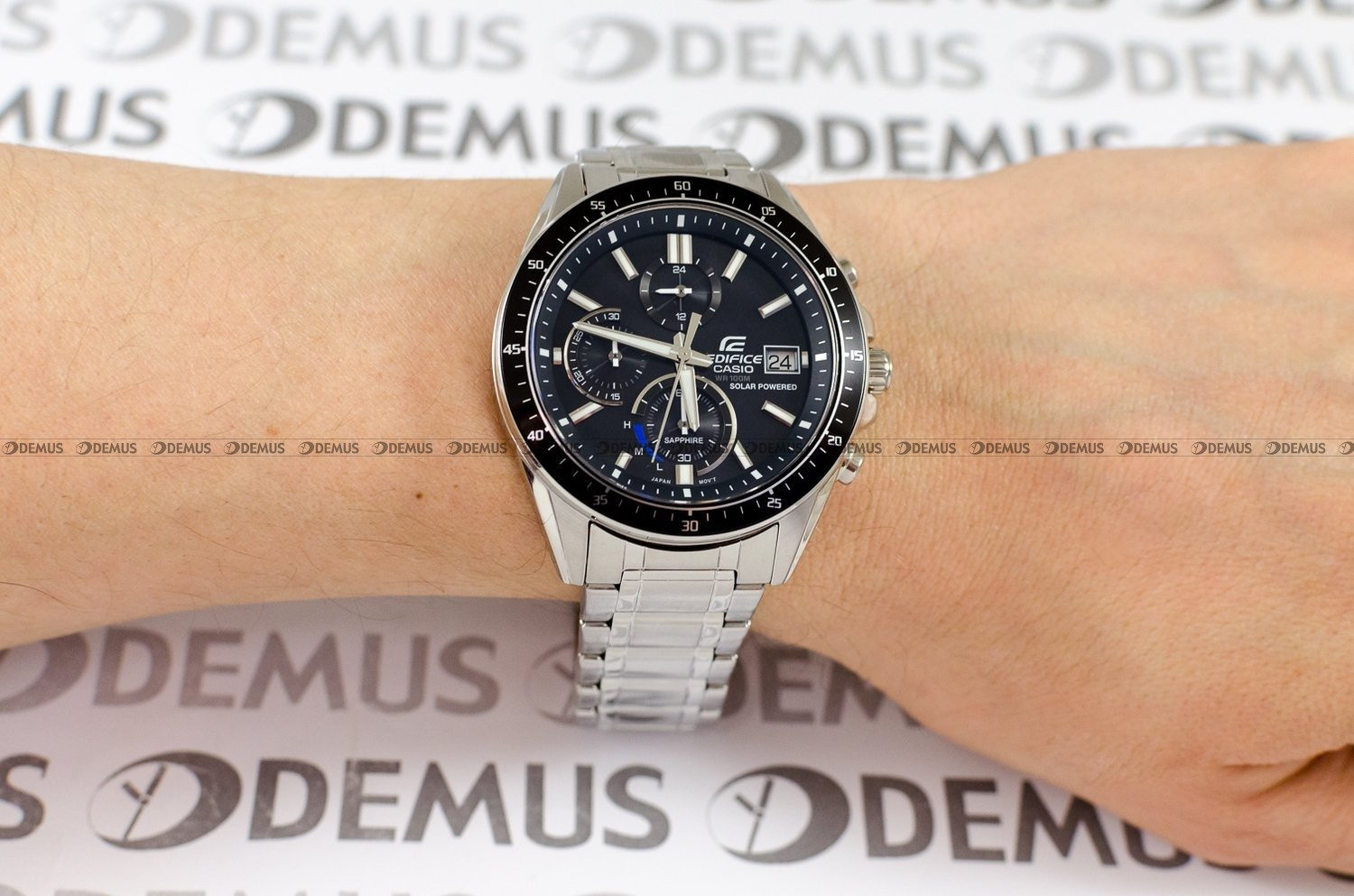 Gorąco polecamy oryginalny zegarek Casio EDIFICE Chronograph EFS-S510D-1AVUEF dla Panów, którzy cenią sobie elegancję i szyk. Wygodę w codziennym użytkowaniu zapewnia stalowa bransoleta. Zegarek jest napędzany przez sprawdzony mechanizm kwarcowy - solar ze wskaźnikiem naładowania zasilany ogniwem słonecznym. Okrągła, stalowa koperta to połączenie trwałości, komfortu i najnowszych trendów. Zegarek został dodatkowo uszczelniony przy użyciu zakręcanego dekla. Wysoka jakość urządzenia przekłada się na klasę wodoodporności na poziomie WR100. Klasyczna, wskazówkowa tarcza w kolorze czarnym podkreśla ekskluzywny charakter tego modelu. Urządzenie oferuje datownik wskazujący aktualny dzień miesiąca. Wskazówki zegarka zostały pokryte warstwą fosforyzującą Neobrite ułatwiającą odczytywanie godziny w ciemności. Tarcza zegarka jest chroniona przez szkło szafirowe, które zapewnia wysoką odporność na zarysowanie i stłuczenie.Produkt jest objęty 3-letnią (bezpłatnie) lub 6-letnią (za dopłatą) gwarancją.