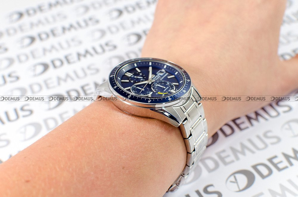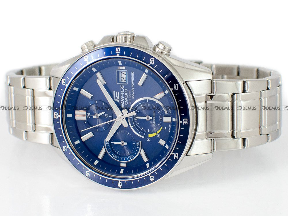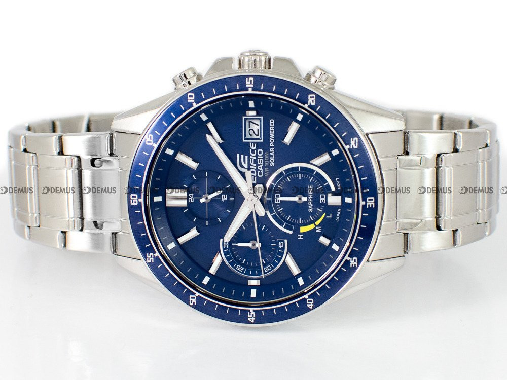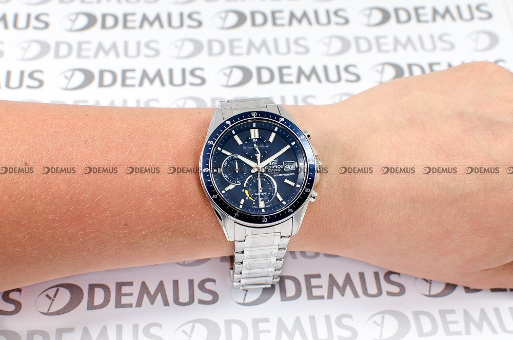 Gorąco polecamy wyjątkowy zegarek Casio Edifice Chronograph EFS-S510D-2AVUEF dla Panów, którzy cenią sobie dodatki z charakterem. O niezwykłym charakterze czasomierza decyduje m.in. stalowa bransoleta. Zegarek jest napędzany przez mechanizm kwarcowy - solar ze wskaźnikiem naładowania. Okrągła, stalowa koperta jest najlepszą gwarancją trwałości tego zegarka. Zegarek został dodatkowo uszczelniony dzięki wykorzystaniu zakręcanego dekla. Zegarek cechuje się klasą wodoodporności WR100. Niebieska, wskazówkowa tarcza z pewnością przypadnie do gustu właścicielowi tego zegarka. Zegarek pokazuje czas w trybie 12- oraz 24-godzinnym. Z myślą o wygodzie użytkownika wskazówki zegarka zostały pokryte warstwą fosforyzującą Neobrite. Do ochrony tarczy wykorzystano odporne na zarysowania i stłuczenia szkiełko szafirowe.Zegarek Casio Edifice Chronograph EFS-S510D-2AVUEF jest objęty 3-letnią gwarancją producenta z opcją rozszerzenia do 6 lat (za dopłatą).