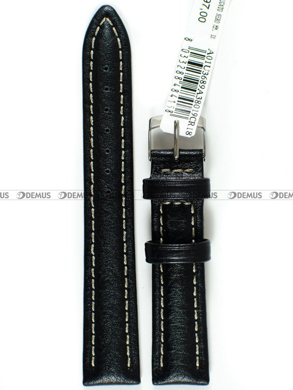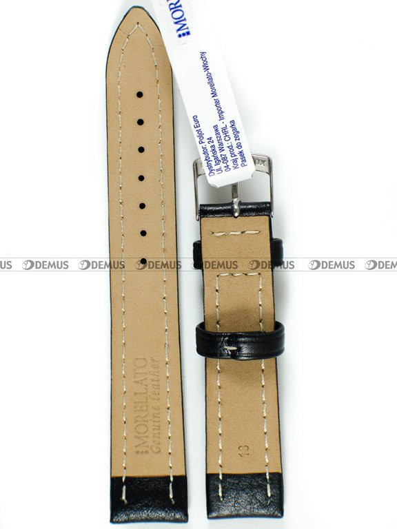Oryginalny pasek do zegarka Morellato A01U3689A38019CR18 wykonany z tradycyjnej, naturalnej skóry. Produkt jest koloru czarnego. Długość paska wynosi 16,5 cm liczona od klamerki do ostatniego otworu. Ważną cechą każdego paska jest jego szerokość - w tym przypadku wynosi ona 18 mm (16 mm przy klamerce).Parametry techniczne