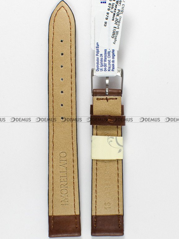 Gorąco polecamy oryginalny pasek do zegarka Morellato A01X4219A97040CR16 z tradycyjnej, naturalnej skóry. O charakterze tego produktu decyduje w głównej mierze brązowy kolor. Pasek ma długość 17 cm liczoną od klamerki do ostatniego otworu. Pasek ma szerokość 16 mm (14 mm przy klamerce).Parametry techniczne