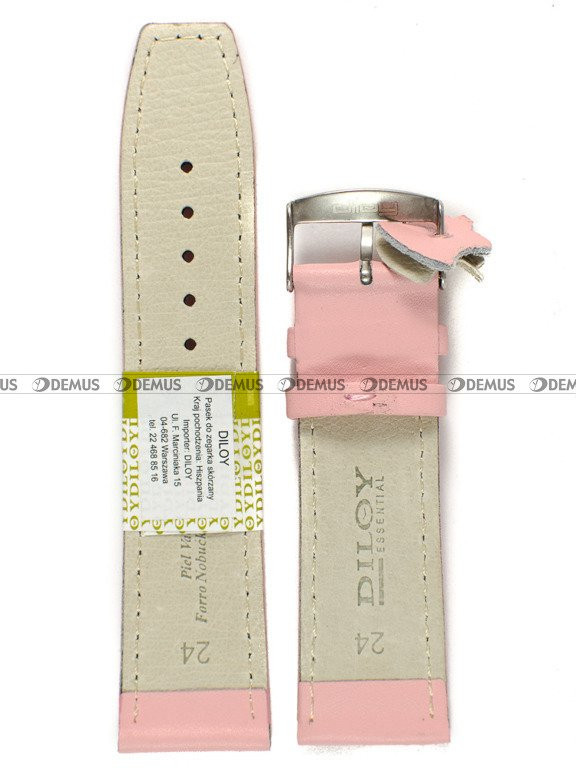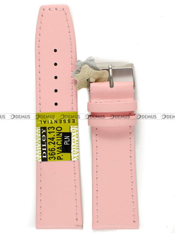 Skórzany pasek do zegarka Diloy 366.24.13, 24 mm, Różowy