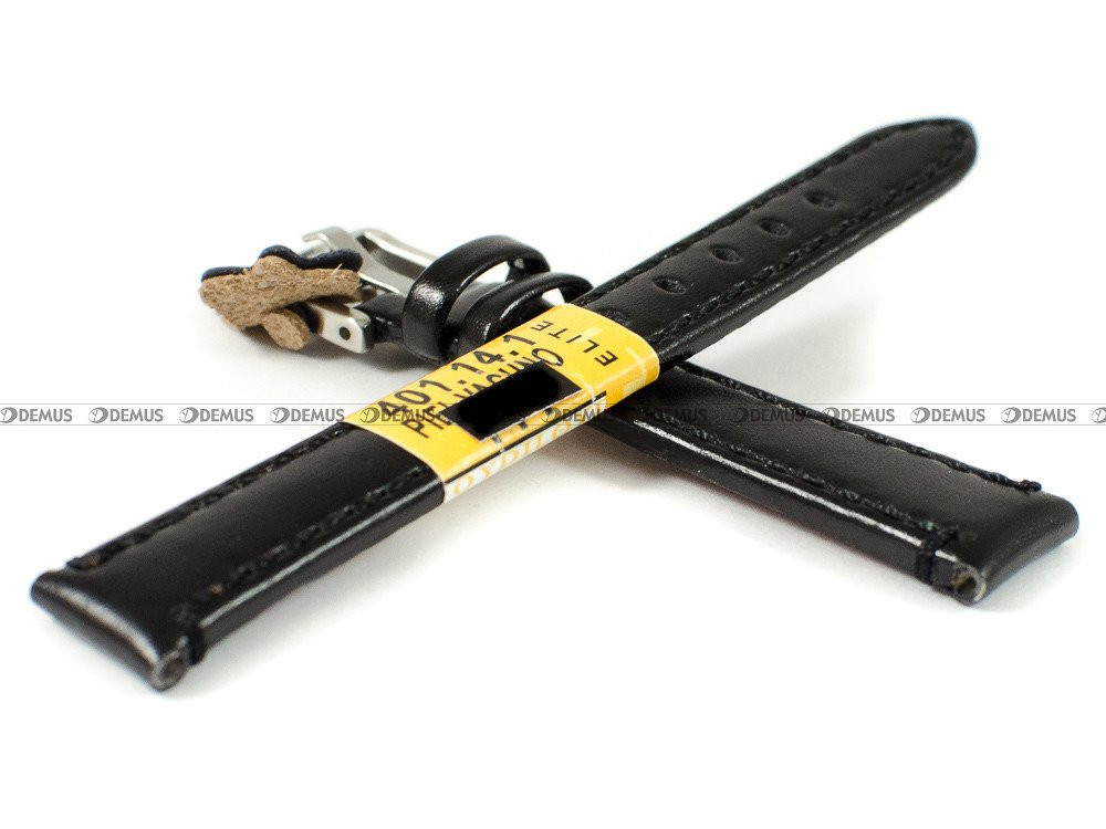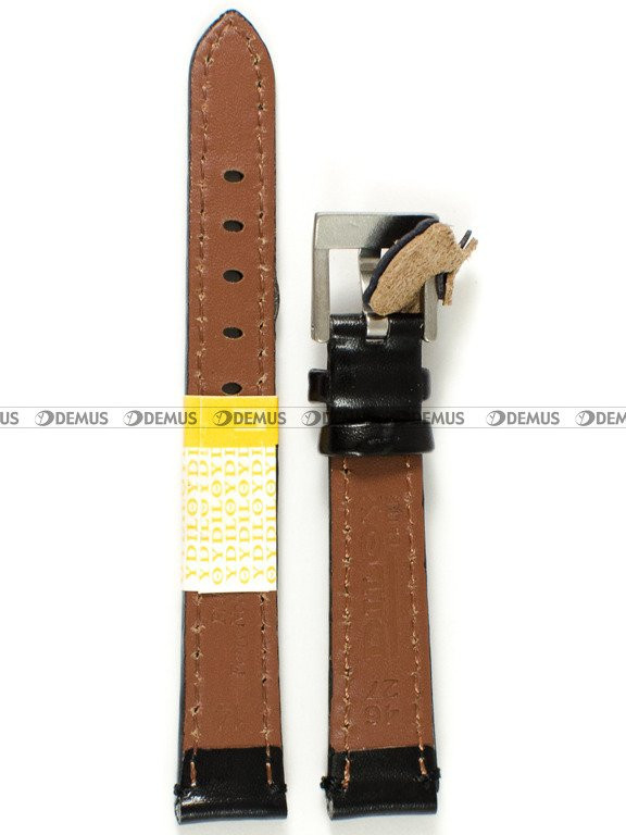 Pasek do zegarka Diloy 401.14.1, który został wykonany z naturalnej skóry. Produkt jest koloru czarnego. Pasek ma długość 14,5 cm. Pasek ma szerokość 14 mm (12 mm przy klamerce).Parametry techniczne